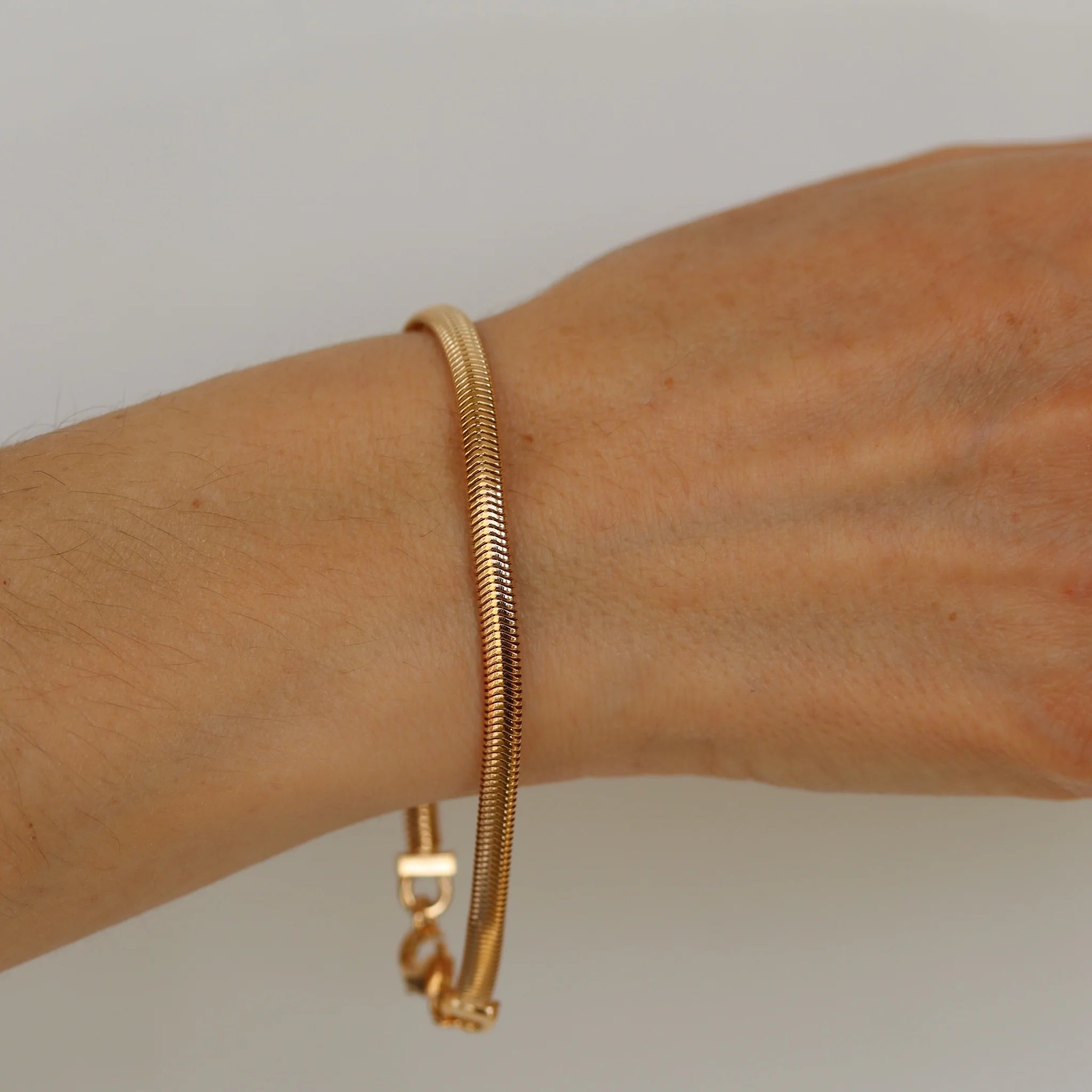 Introducing "Rebirth" our 18k gold plated snake bracelet chain—a piece that symbolizes transformation and renewal. Much like a snake shedding its skin to emerge revitalized, this chain represents new beginnings and continuous growth. The sleek, fluid design of the snake bracelet chain captures the essence of rebirth, making it an elegant and meaningful addition to any jewellery collection.