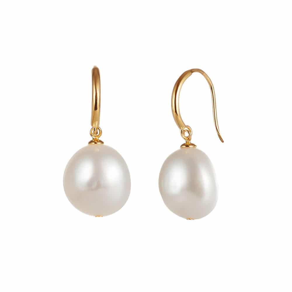 Baroque freshwater pearl Solo Drop Earrings on yellow gold plated sterling silver.