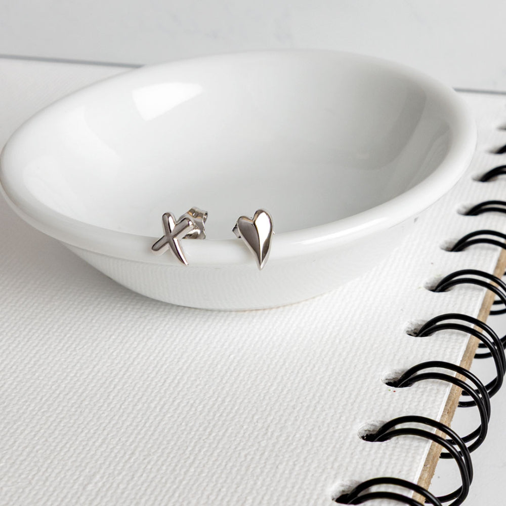 Playful and perfectly mismatched, these Sterling Silver Desire Kiss and Heart Stud Earrings feature a delicate heart and a subtle X Kiss symbol—capturing the essence of love in true Kit Heath Desire style. Wear them together as a sweet statement, and perfect for stacking.