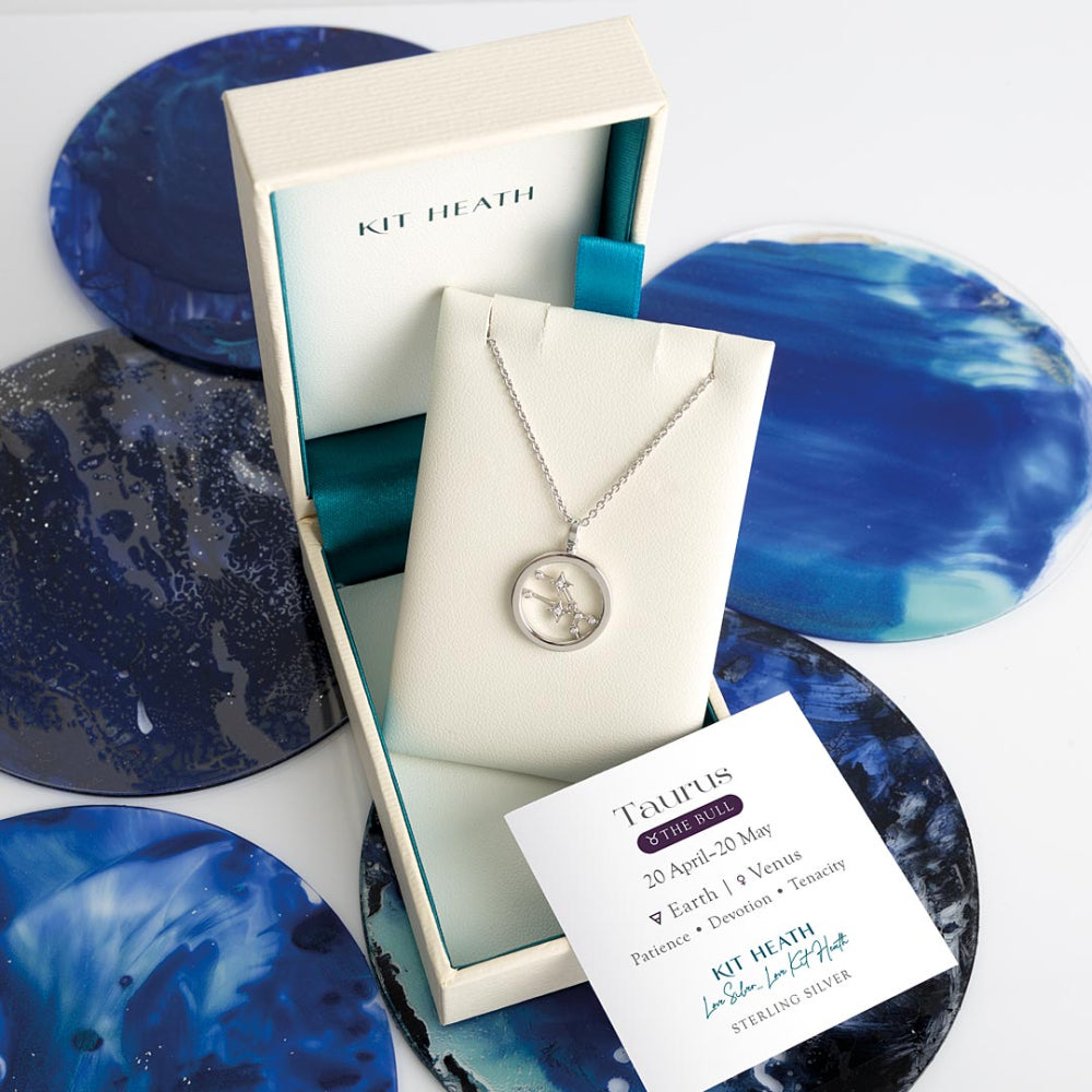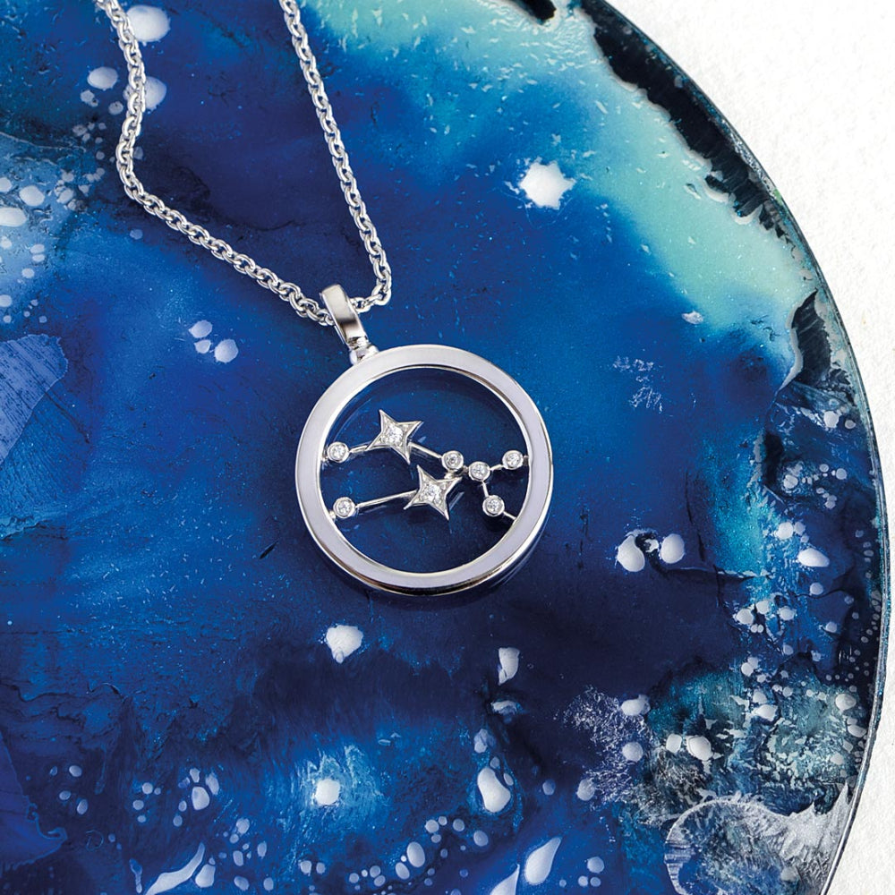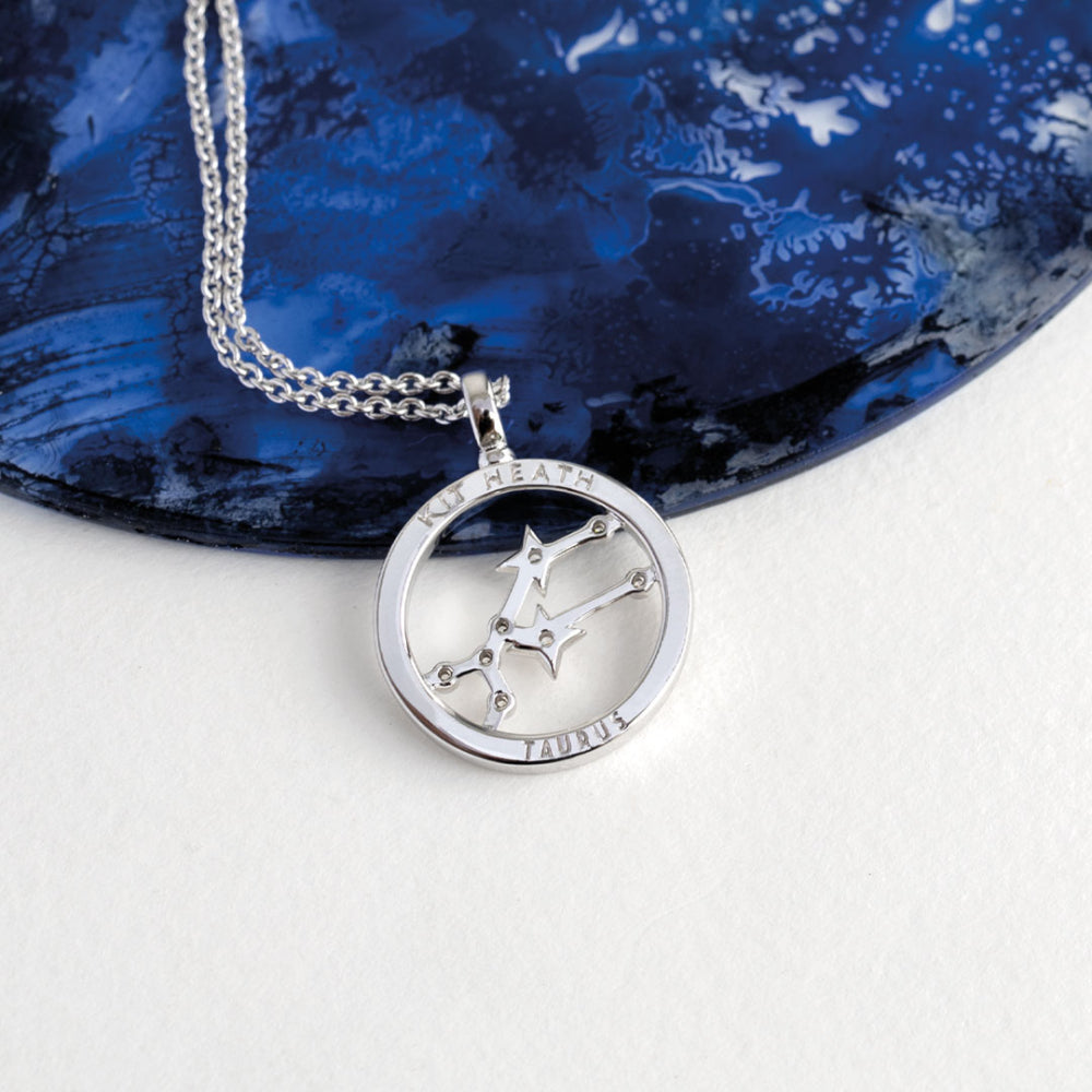 The perfect gift for those born under the sign of Taurus, the second sign in the Zodiac calendar, the Céleste Constellation necklace is designed in our sleek, understated style. Made in rhodium-plated sterling silver, the circular outline follows the medallion-like contours of our Céleste Eclipse collection, drawing its unique Zodiac silhouette from the Taurus star constellation. Each key star point is elegantly detailed with sparkling cubic zirconia, marking its path in subtle elegance. Steeped in tales and mythology as old as time, the Taurus necklace represents the wearer’s individuality by celebrating their unique traits and acknowledging the common ground with those who share this sign. Great for layering and creating your own, individual look, this beautiful necklace will complement an eclectic array of styles while remaining utterly timeless.