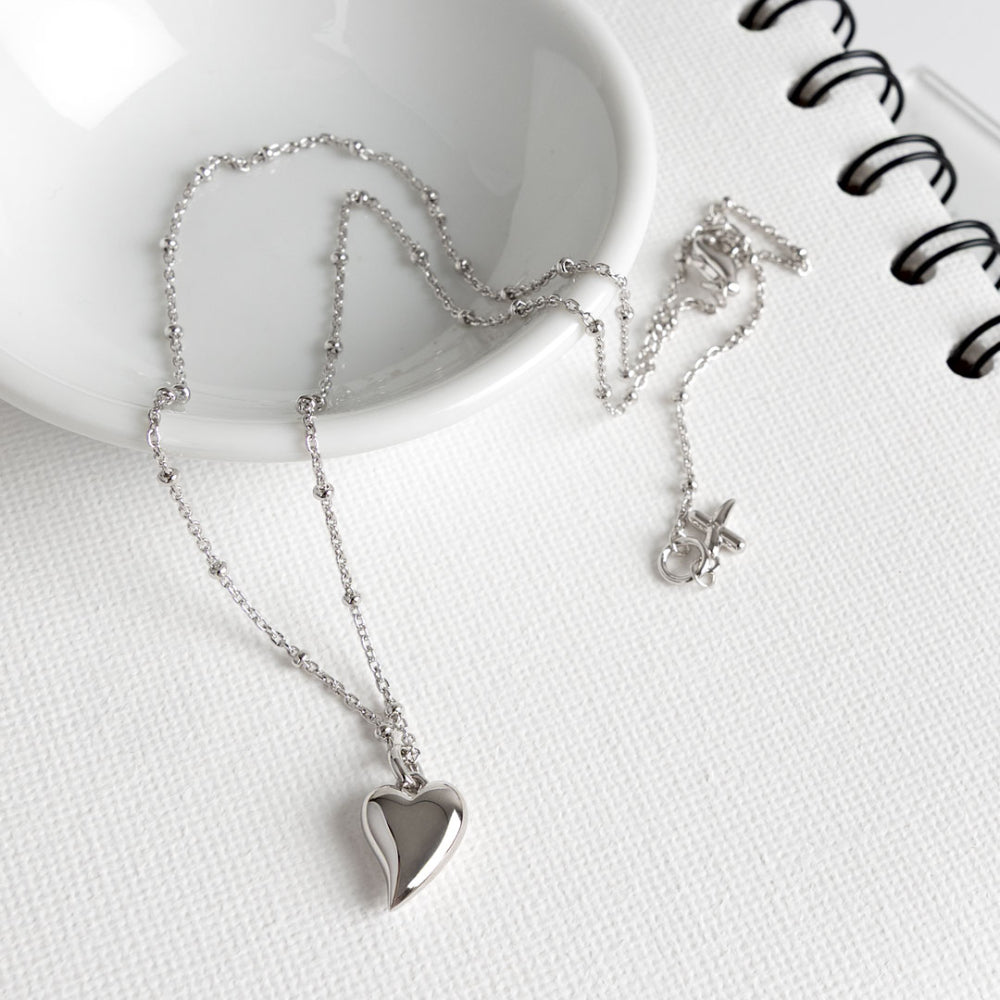 Sleek and sophisticated, the Desire Kiss Midi Heart Ball Chain Necklace is a refined update to a Kit Heath classic. The softly curvaceous heart pendant is suspended from a contemporary deluxe ball chain—making it a statement of elegance with a modern edge.