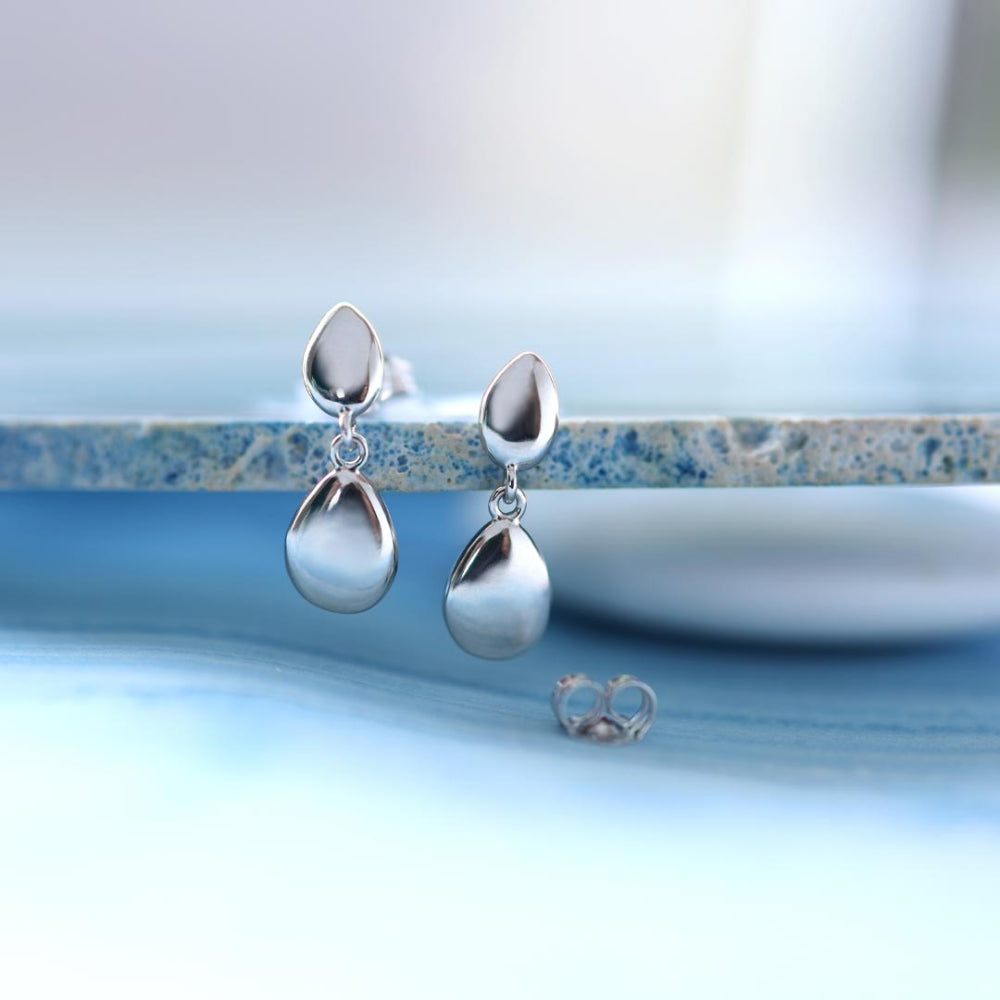 These elegant premium sterling silver pebble twin droplet drop earrings are designed to provide an eye-catching accessory that can be worn at work or to accompany any day or formal outfit for any occasion. A duo of elegantly formed pebbles beautifully glimmer to catch the light, with their shapes encapsulating the organic magic of the sea shore. Part of the Coast Pebble collection, with co-ordinating necklaces and bracelets also available.