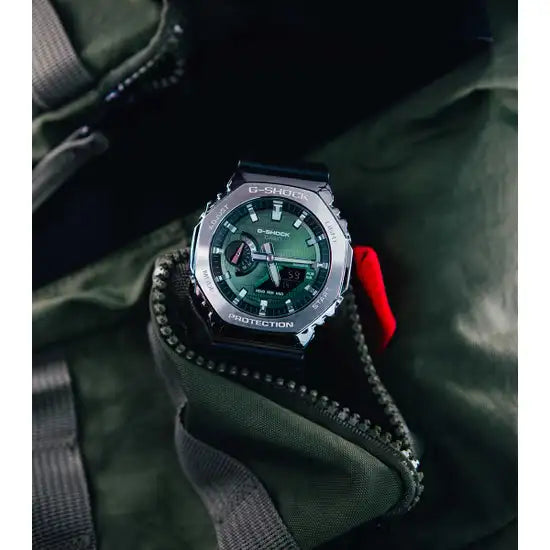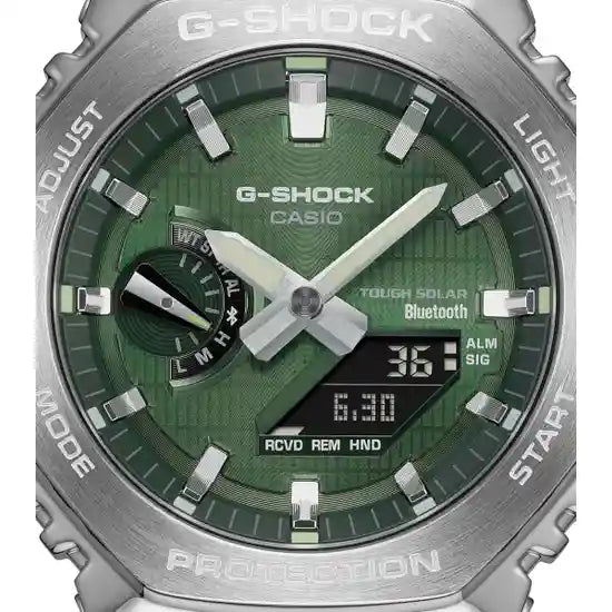 The new Metal Covered 2100. Boasting a stand-out forest green dial, Bluetooth and Tough Solar technology .